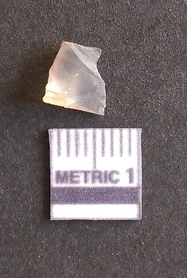 | Description / विवरण | The quartz fragment shows prominent flaks scars and sharp flaked ends as a result of flaking. The piece is translucent white and shows cryptocrystalline matrix. |