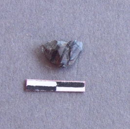 | Description / विवरण | This is a black fragment of jasper with clear flake scars and a pointed end. It has sharp edges and pointed ends as a result if flaking. |