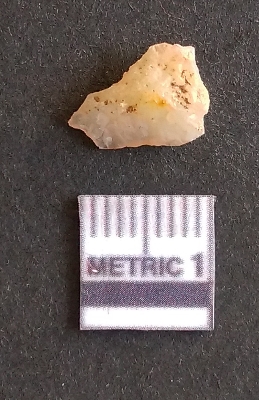 | Description / विवरण | The quartz fragment shows prominent flaks scars and sharp flaked ends as a result of flaking. The piece is translucent white and shows cryptocrystalline matrix. |