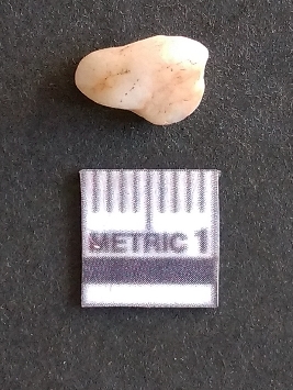 | Description / विवरण | The quartz fragment shows prominent flaks scars and sharp flaked ends as a result of flaking. The piece is translucent white and shows cryptocrystalline matrix. |