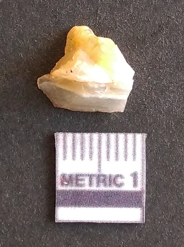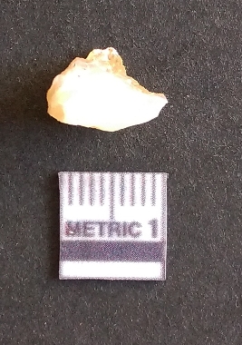 | Description / विवरण | The quartz fragment shows prominent flaks scars and sharp flaked ends as a result of flaking. The piece is translucent white and shows cryptocrystalline matrix. |