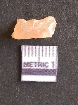 | Description / विवरण | The quartz fragment shows prominent flaks scars and sharp flaked ends as a result of flaking. The piece is translucent white and shows cryptocrystalline matrix. |