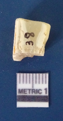 | Description / विवरण | It is chalcedony flake, translucent in appearance. The piece shows sharp pointed ends and flake scars on the surface as a result of flaking. The piece shows a bulb of percussion. |
