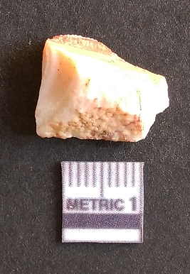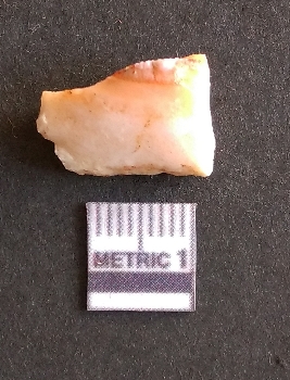 | Description / विवरण | The quartz fragment shows prominent flaks scars and sharp flaked ends as a result of flaking. The piece is translucent white and shows cryptocrystalline matrix. |