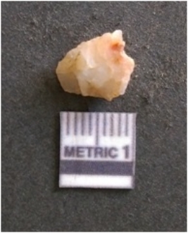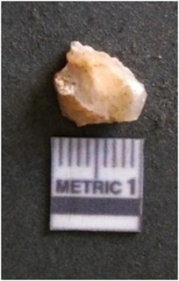 | Description / विवरण | It is chalcedony flake, translucent in appearance. The piece shows sharp pointed ends and flake scars on the surface as a result of flaking. The piece shows a bulb of percussion. |