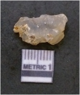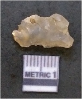 | Description / विवरण | It is chalcedony flake, translucent in appearance. The piece shows sharp pointed ends and flake scars on the surface as a result of flaking. The piece shows a bulb of percussion. |