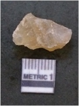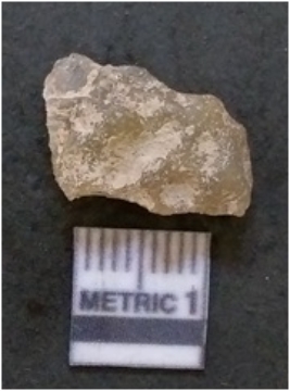 | Description / विवरण | It is chalcedony flake, translucent in appearance. The piece shows sharp pointed ends and flake scars on the surface as a result of flaking. The piece shows a bulb of percussion. |