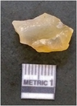 | Description / विवरण | It is chalcedony flake, translucent in appearance. The piece shows sharp pointed ends and flake scars on the surface as a result of flaking. The piece shows a bulb of percussion. |