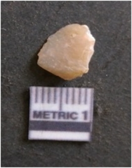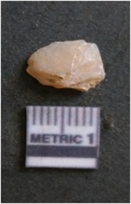| Description / विवरण | It is chalcedony flake, translucent in appearance. The piece shows sharp pointed ends and flake scars on the surface as a result of flaking. The piece shows a bulb of percussion. |