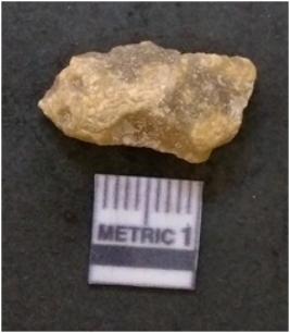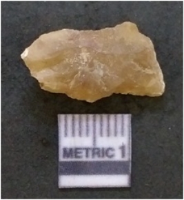 | Description / विवरण | It is chalcedony flake, translucent in appearance. The piece shows sharp pointed ends and flake scars on the surface as a result of flaking. The piece shows a bulb of percussion. |