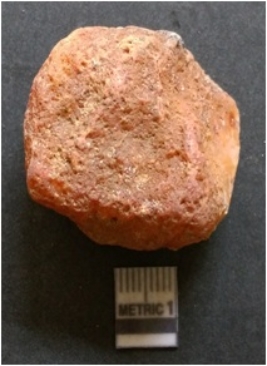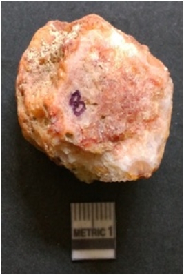 | Description / विवरण | The flake has irregular fracture pattern and sharp flaked edges as a result of lithic knapping activity. The piece is pale, with surfacial flake scars and a bulbous end. The quartz flake is rosy white in colour. |