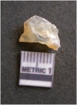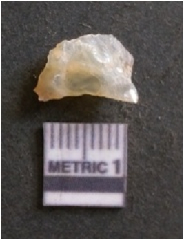 | Description / विवरण | It is chalcedony flake, translucent in appearance. The piece shows sharp pointed ends and flake scars on the surface as a result of flaking. The piece shows a bulb of percussion. |