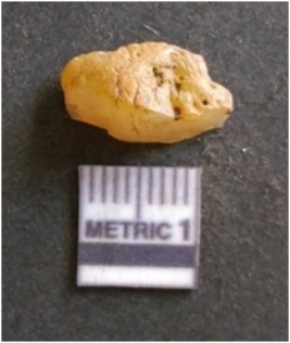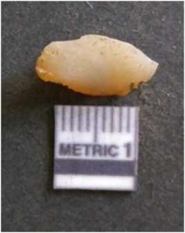 | Description / विवरण | It is chalcedony flake, translucent in appearance. The piece shows sharp pointed ends and flake scars on the surface as a result of flaking. The piece shows a bulb of percussion. |