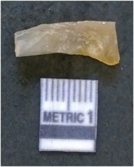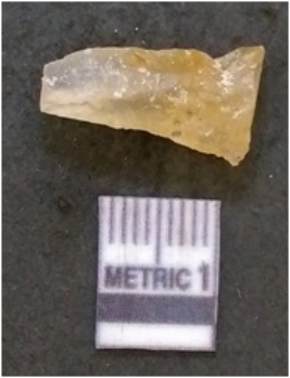 | Description / विवरण | It is chalcedony flake, translucent in appearance. The piece shows sharp pointed ends and flake scars on the surface as a result of flaking. The piece shows a bulb of percussion. |
