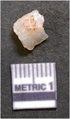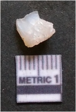 | Description / विवरण | The quartz flake has sharp flaked edges and pointed ends as a result of flaking. The piece is semi-transparent in nature with irregular fracture pattern. The piece is roughly triangular in shape and has a prominent bulb of percussion. |