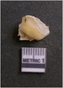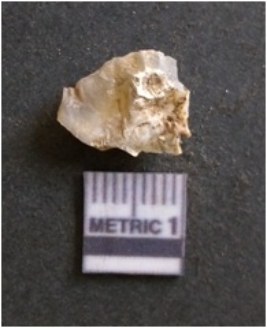 | Description / विवरण | It is chalcedony flake, translucent in appearance. The piece shows sharp pointed ends and flake scars on the surface as a result of flaking. The piece shows a bulb of percussion. |