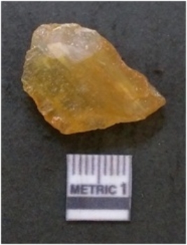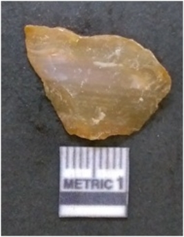 | Description / विवरण | It is chalcedony flake, translucent in appearance. The piece shows sharp pointed ends and flake scars on the surface as a result of flaking. The piece shows a bulb of percussion. |