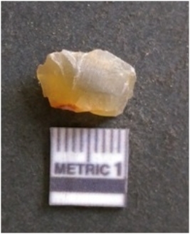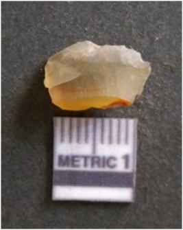 | Description / विवरण | It is chalcedony flake, translucent in appearance. The piece shows sharp pointed ends and flake scars on the surface as a result of flaking. The piece shows a bulb of percussion. |