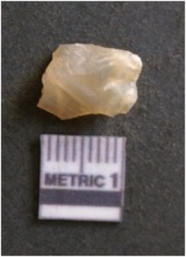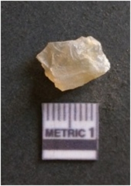 | Description / विवरण | It is chalcedony flake, translucent in appearance. The piece shows sharp pointed ends and flake scars on the surface as a result of flaking. The piece shows a bulb of percussion. |