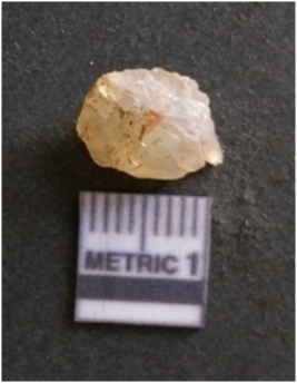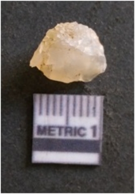 | Description / विवरण | It is chalcedony flake, translucent in appearance. The piece shows sharp pointed ends and flake scars on the surface as a result of flaking. The piece shows a bulb of percussion. |