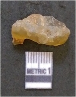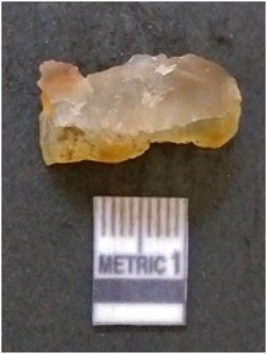 | Description / विवरण | It is chalcedony flake, translucent in appearance. The piece shows sharp pointed ends and flake scars on the surface as a result of flaking. The piece shows a bulb of percussion. |
