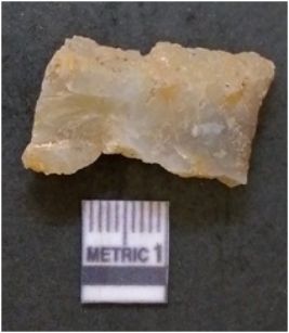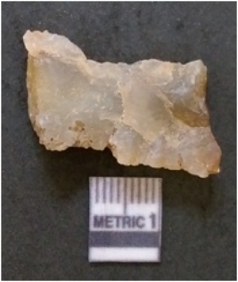 | Description / विवरण | It is chalcedony flake, translucent in appearance. The piece shows sharp pointed ends and flake scars on the surface as a result of flaking. The piece shows a bulb of percussion. |