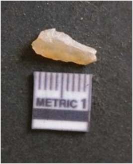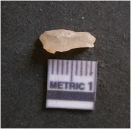 | Description / विवरण | It is chalcedony flake, translucent in appearance. The piece shows sharp pointed ends and flake scars on the surface as a result of flaking. The piece shows a bulb of percussion. |