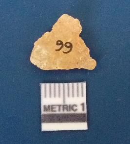 | Description / विवरण | The chert piece is dark in color, with a prominent bulb of percussion and sharp flaked edges. The piece is a part of lithic debitage or raw material for lithic knapping. The piece shows clear ripple marks and bulb of percussion. |