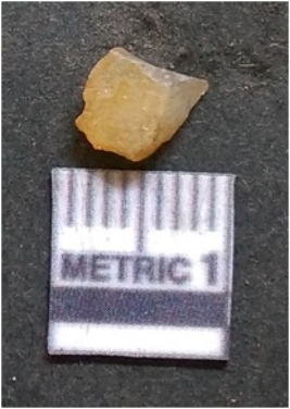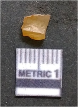 | Description / विवरण | It is chalcedony flake, translucent in appearance. The piece shows sharp pointed ends and flake scars on the surface as a result of flaking. The piece shows a bulb of percussion. |