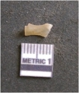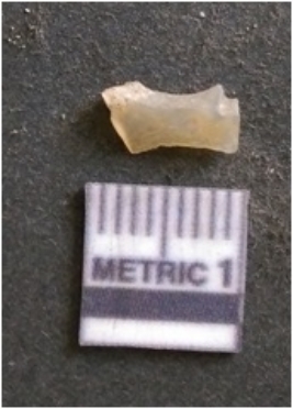 | Description / विवरण | It is chalcedony flake, translucent in appearance. The piece shows sharp pointed ends and flake scars on the surface as a result of flaking. The piece shows a bulb of percussion. |