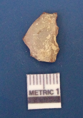| Description / विवरण | The chert piece is dark in color, with a prominent bulb of percussion and sharp flaked edges. The piece is a part of lithic debitage or raw material for lithic knapping. The piece shows clear ripple marks and bulb of percussion. |