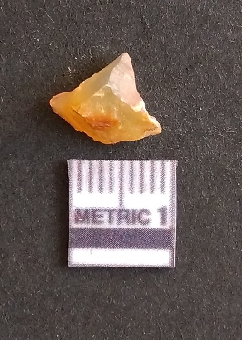 | Description / विवरण | The chalcedony flake is pale yellow in color. Translucent in appurtenance. The piece is shows sharp pointed ends and flake scars on the surface. As a result of flaking. |