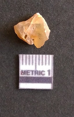 | Description / विवरण | The chalcedony flake is pale yellow in color. Translucent in appurtenance. The piece is shows sharp pointed ends and flake scars on the surface. As a result of flaking. |