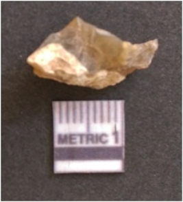 | Description / विवरण | The flake has irregular fracture pattern and sharp flaked edges as a result of lithic knapping activity. The piece is pale, with surfacial flake scars and a bulbous end. The flake is of smoky quartz variety, grayish in colour and translucent in appearance. |