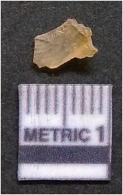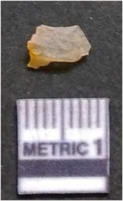 | Description / विवरण | It is chalcedony flake, translucent in appearance. The piece shows sharp pointed ends and flake scars on the surface as a result of flaking. The piece shows a bulb of percussion. |