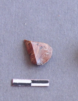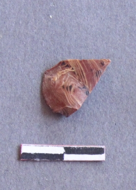 | Description / विवरण | It is lithic debitage fragment with sharp mid ridges and sharp edges as a result of flaking. The chert flake has flake scars and sharp ends. |