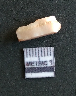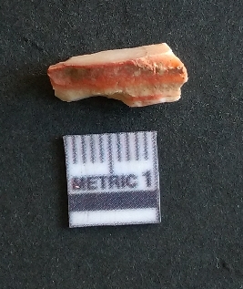 | Description / विवरण | The carnelian flake is reddish in color, with sharp flakes edges and a small bulb of percussion owing to knapping activity. |