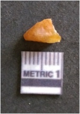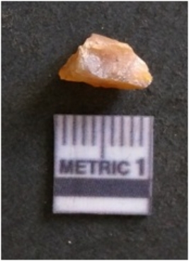 | Description / विवरण | It is chalcedony flake, translucent in appearance. The piece shows sharp pointed ends and flake scars on the surface as a result of flaking. The piece shows a bulb of percussion, and on the verse of turning to carnelian due to applied heat. |