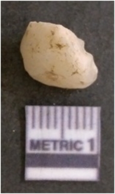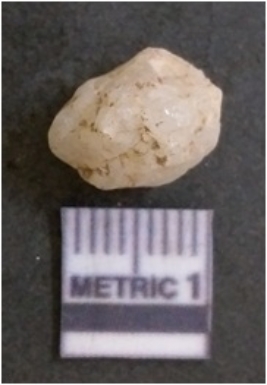 | Description / विवरण | The quartz flake has sharp flaked edges and pointed ends as a result of flaking. The piece is semi-transparent in nature with irregular fracture pattern. The piece is roughly triangular in shape and has a prominent bulb of percussion. |