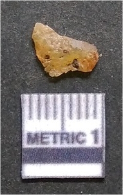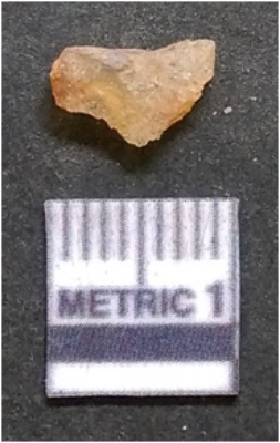 | Description / विवरण | It is chalcedony flake, translucent in appearance. The piece shows sharp pointed ends and flake scars on the surface as a result of flaking. The piece shows a bulb of percussion. |