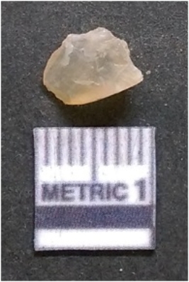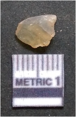 | Description / विवरण | It is chalcedony flake, translucent in appearance. The piece shows sharp pointed ends and flake scars on the surface as a result of flaking. The piece shows a bulb of percussion. |