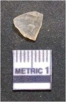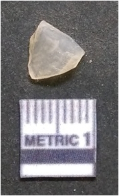 | Description / विवरण | It is chalcedony flake, translucent in appearance. The piece shows sharp pointed ends and flake scars on the surface as a result of flaking. The piece shows a bulb of percussion. |