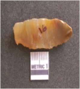 | Description / विवरण | The flake has irregular fracture pattern and sharp flaked edges as a result of lithic knapping activity. The piece is pale, with surfacial flake scars and a bulbous end. The flake is of smoky quartz variety, grayish in colour and translucent in appearance. |