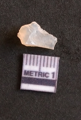 | Description / विवरण | The quartz fragment shows prominent flaks scars and sharp flaked ends as a result of flaking. The piece is translucent white and shows cryptocrystalline matrix. |