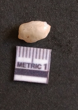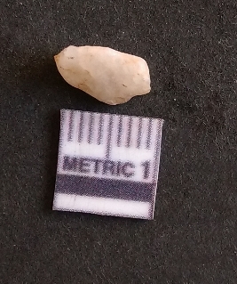 | Description / विवरण | The quartz fragment shows prominent flaks scars and sharp flaked ends as a result of flaking. The piece is translucent white and shows cryptocrystalline matrix. |