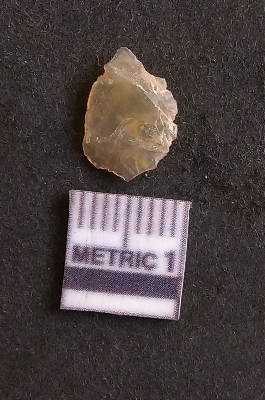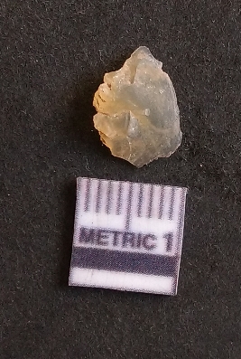 | Description / विवरण | The quartz fragment shows prominent flaks scars and sharp flaked ends as a result of flaking. The piece is translucent white and shows cryptocrystalline matrix. |