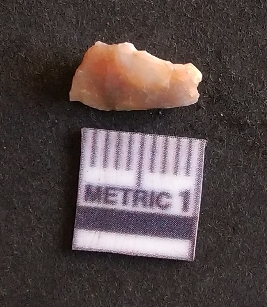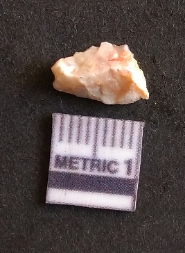 | Description / विवरण | The quartz fragment shows prominent flaks scars and sharp flaked ends as a result of flaking. The piece is translucent white and shows cryptocrystalline matrix. |