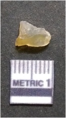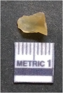 | Description / विवरण | It is chalcedony flake, translucent in appearance. The piece shows sharp pointed ends and flake scars on the surface as a result of flaking. The piece shows a bulb of percussion. |