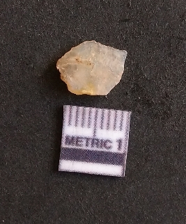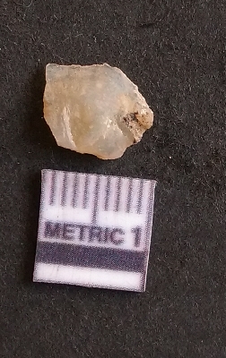 | Description / विवरण | The quartz fragment shows prominent flaks scars and sharp flaked ends as a result of flaking. The piece is translucent white and shows cryptocrystalline matrix. |