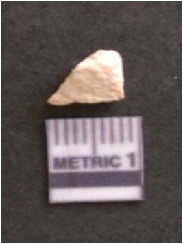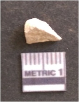 | Description / विवरण | The quartz flake has sharp flaked edges and pointed ends as a result of flaking. The piece is semi-transparent in nature with irregular fracture pattern. The piece is roughly triangular in shape and has a prominent bulb of percussion. |